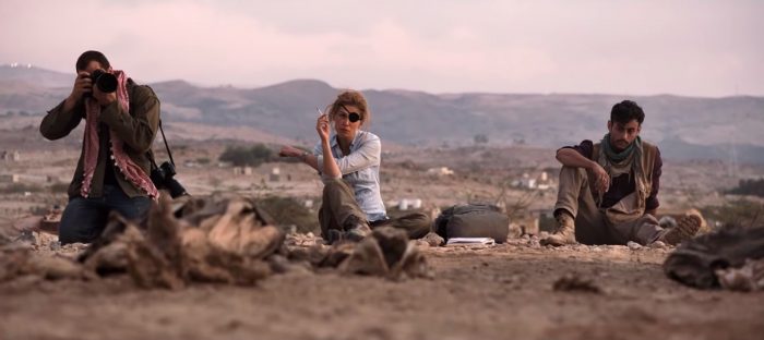Rosamund Pike is a revelation as Colvin, throwing herself into the role with absolute abandon. Equally comfortable in filthy clothing in a war zone as bombs blew up around her as she was in an evening gown accepting an award, Pike vividly brings Colman to life, nailing her rough voice, but more, finding the deep, ferocious compassion of Colvin, who thought of the victims of war before her own safety. She lost an eye in 2002 and while many thought that injury would lock her to a desk, she slipped on a black eye patch, and despite suffering from PTSD she was back in the field very quickly. Prone to panic attacks, she was almost always smoking, guzzling vodka, wearing designer undergarments so that if her corpse was discovered, they would say she dressed well. Colvin was a remarkable human being.